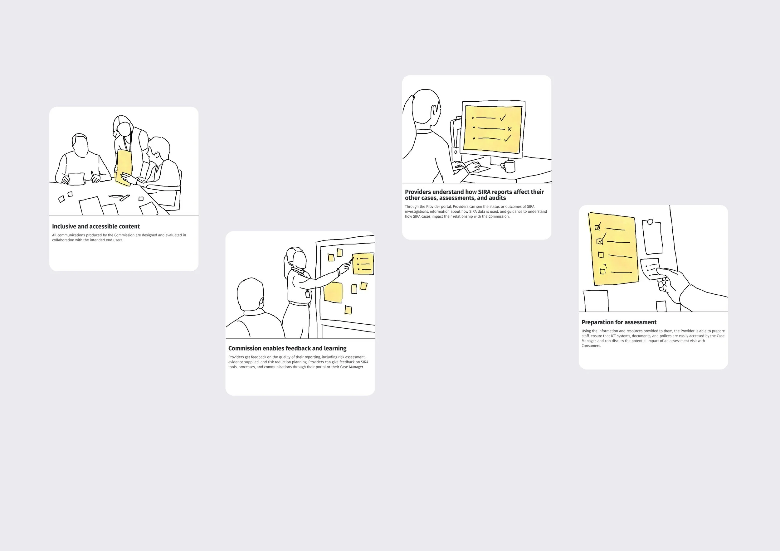 We helped the aged-care industry regulator, Australian Care Quality and Safety Commission, understand and visualise the customer experience. The findings enabled the design of a Future State Blueprint and Guiding Principles for the future.